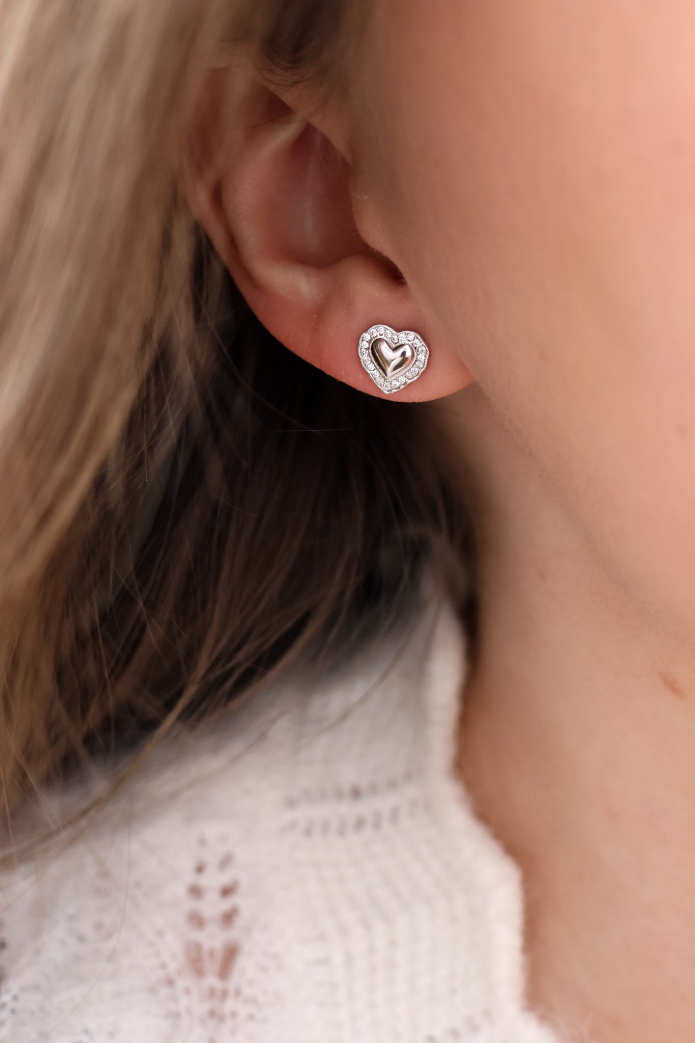 Ett litet, fint hjärtörhänge med fina, glittrande stenar runtomkring. Subtilt och feminint – perfekt för dig som gillar ett enkelt uttryck med en liten detalj som fångar ljuset. Lika vackert ensamt i varje öra som i kombination med andra små favoriter. Välj mellan guld och silver, och låt det bli en del av din vardag.<br><br>